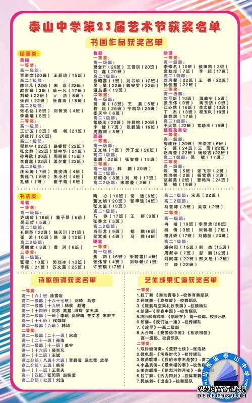 山东省泰山中学第23届艺术节各类比赛获奖名单