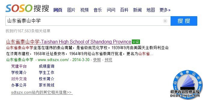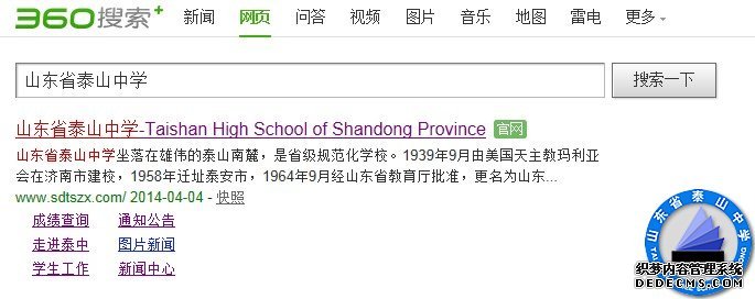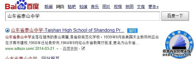 目前,在几个搜索引擎中输入“山东省泰山中学”,即可看到我校网站官网认证的标志,由此更好地保护了我校网站的真实性和权威性,也便于外界确认我校的官方网站。