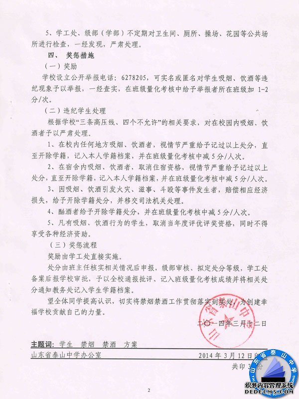 泰山中学学生禁烟禁酒活动实施方案