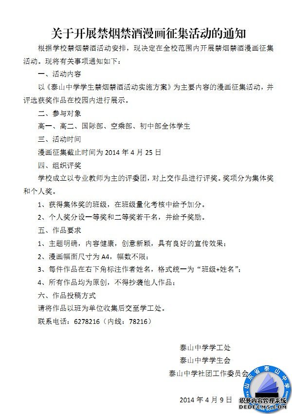 关于开展禁烟禁酒漫画征集活动的通知