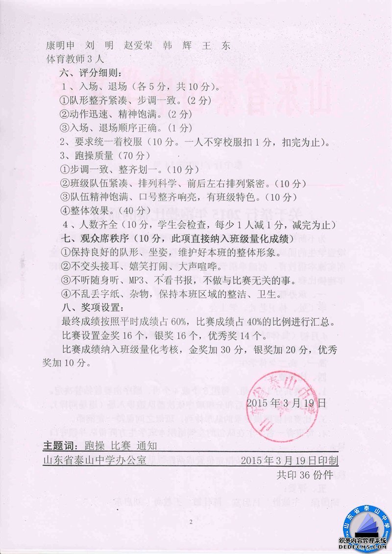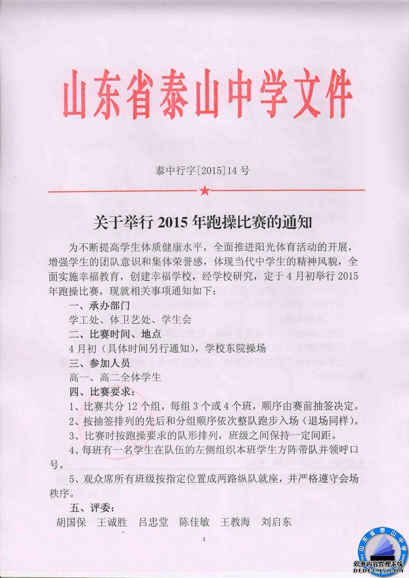 关于举行2015年跑操比赛的通知