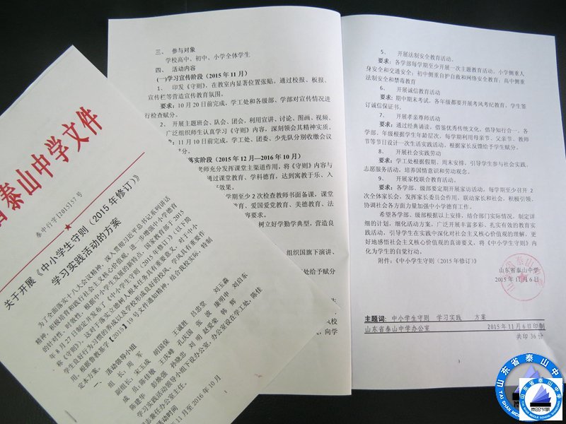 近日,泰山中学通过启动各项丰富多彩的德育活动,在校园内掀起了学习实践《中小学生守则》的热潮。