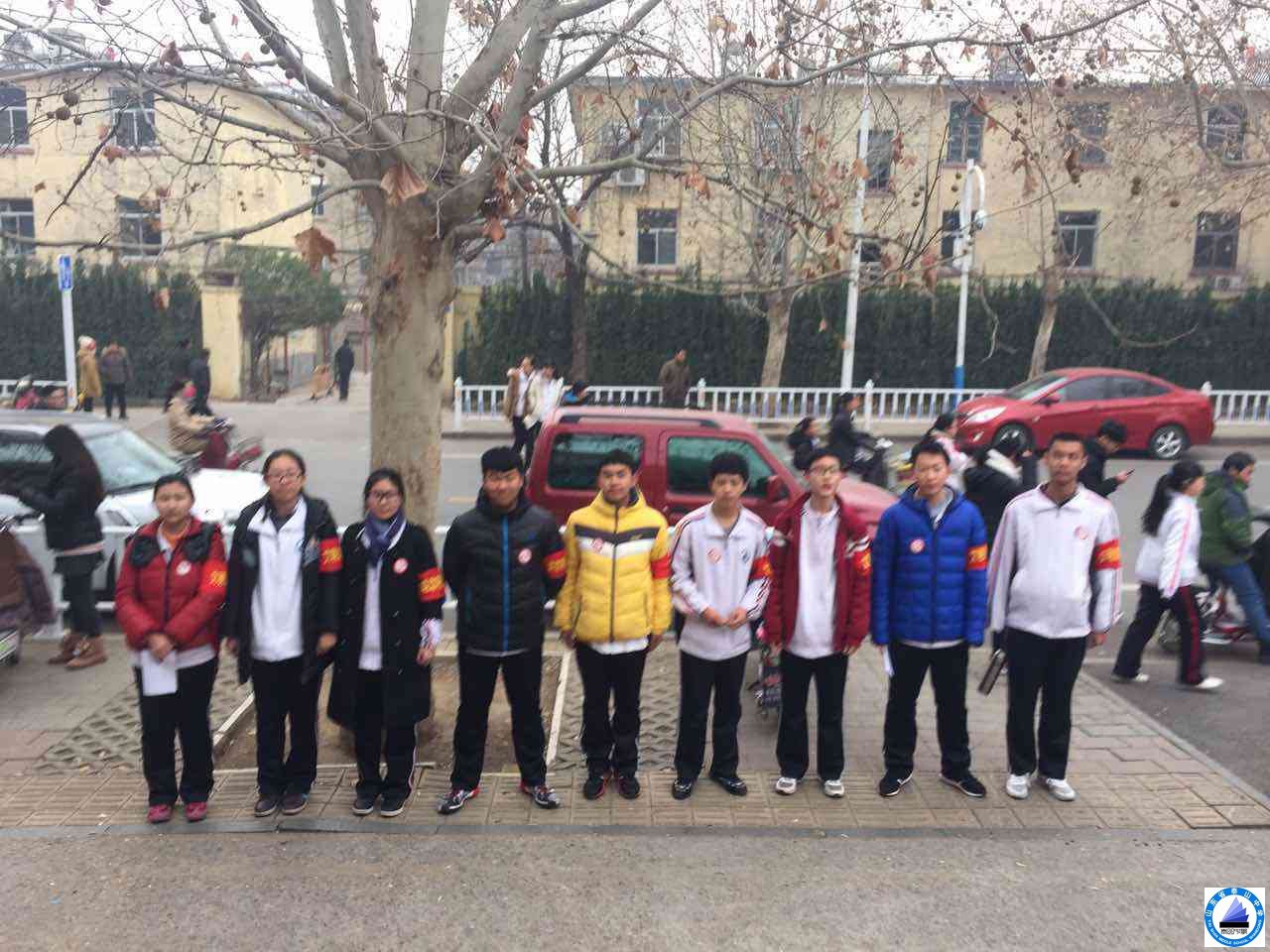 为充分调动全校师生参与创建全国文明城市的积极性和主动性,大力培育文明风尚,提高市民文明素养,提升泰安文明形象,进一步提高我校精神文明建设水平,根据市文明办《泰安市文明劝导志愿服务活动方案》文件精神,结合我校实际情况,于2015年12月13、14日两天高三9班、高一16班部分志愿者在文化路泰山中学门口,开展文明劝导服务活动。