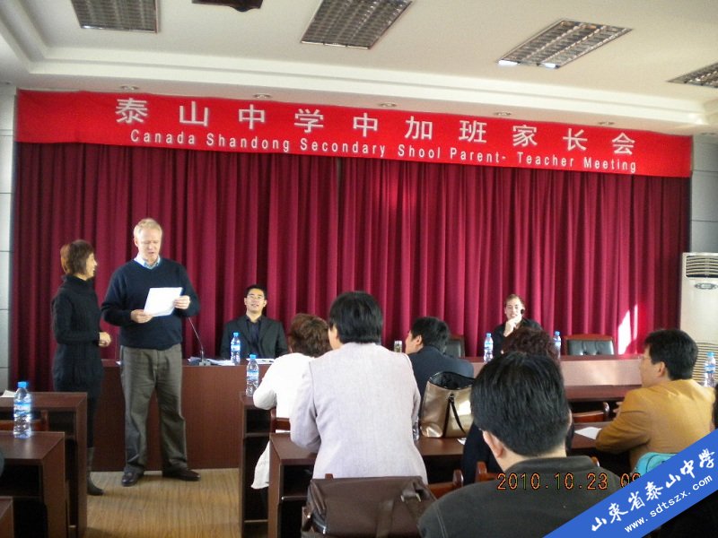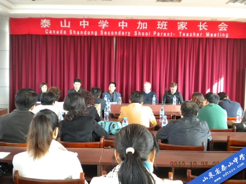 2010年10月23日,国际部2010级中加班家长会顺利召开,负责中加班的领导老师以及全体家长均参加了此次家长会。家长会上,中方及加方的老师对开学一个多月以来中加班同学的学习生活情况向家长做了详细的介绍,对表现良好的同学提出了表样,同时也指出了班级存在的一些问题。通过此次家长会,老师与家长进行了密切的交流,为中加班今后的进一步工作奠定了坚实的基础,努力把中加班建设成为一个学习气氛良好、同学团结协作、师生关系融洽的优秀班集体!