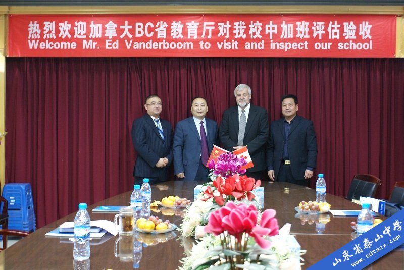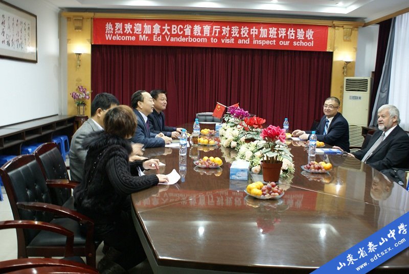 2010年11月16日—17日,加拿大BC省教育厅海外教育司司长Ed Vanderboom先生和朱先生一行两人来我校对中加班项目评估验收。期间评估团听取了中方和加方老师的详细介绍,并参观了中加班课堂,学校实验室、图书馆、多媒体室等教学设施,对我校中加班的各项工作都做了充分的肯定。