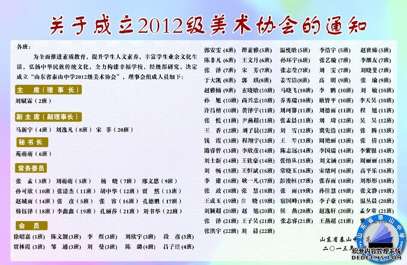 关于成立2012级美术协会的通知