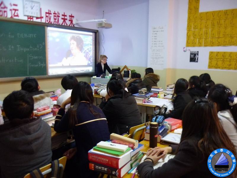 2012年11月20日上午第四节,加拿大校长Lynne给我们带来一节非常有趣味儿的公开课。本节课的题目是“Beauty and Physical Attractiveness ”。她的课堂形式新颖、内容丰富、引人深思。前来听课的除了国际部老师还有小学部孙主任和全体英语老师。