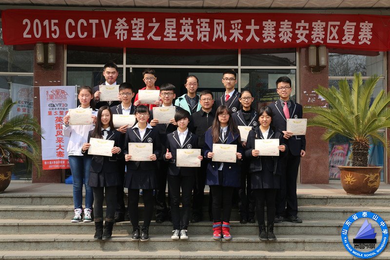 2015年3月28、29日,中央电视台“希望之星”英语风采大赛泰安赛区复赛在我校举行。我校中加班的选手口语流利,发音准确,反应敏捷,气质出众,在172名选手中有13名学生闯入决赛。