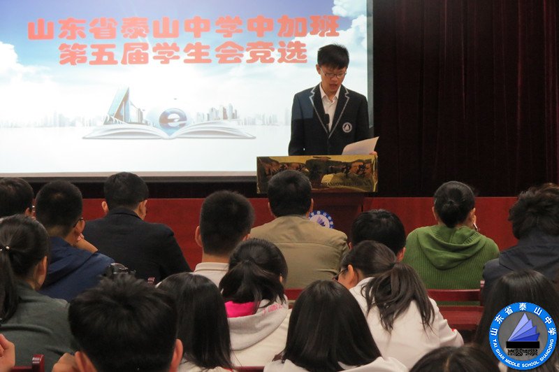 为贯彻以学生为主体的教育理念,充分发挥学生会作用,调动学生参与学校学生日常管理的积极性,培养学生自我管理的能力,丰富校园文化生活,提高学生综合素质。10月25日晚,山东省泰山中学中加班举行了2015——2016学年学生会竞选工作。