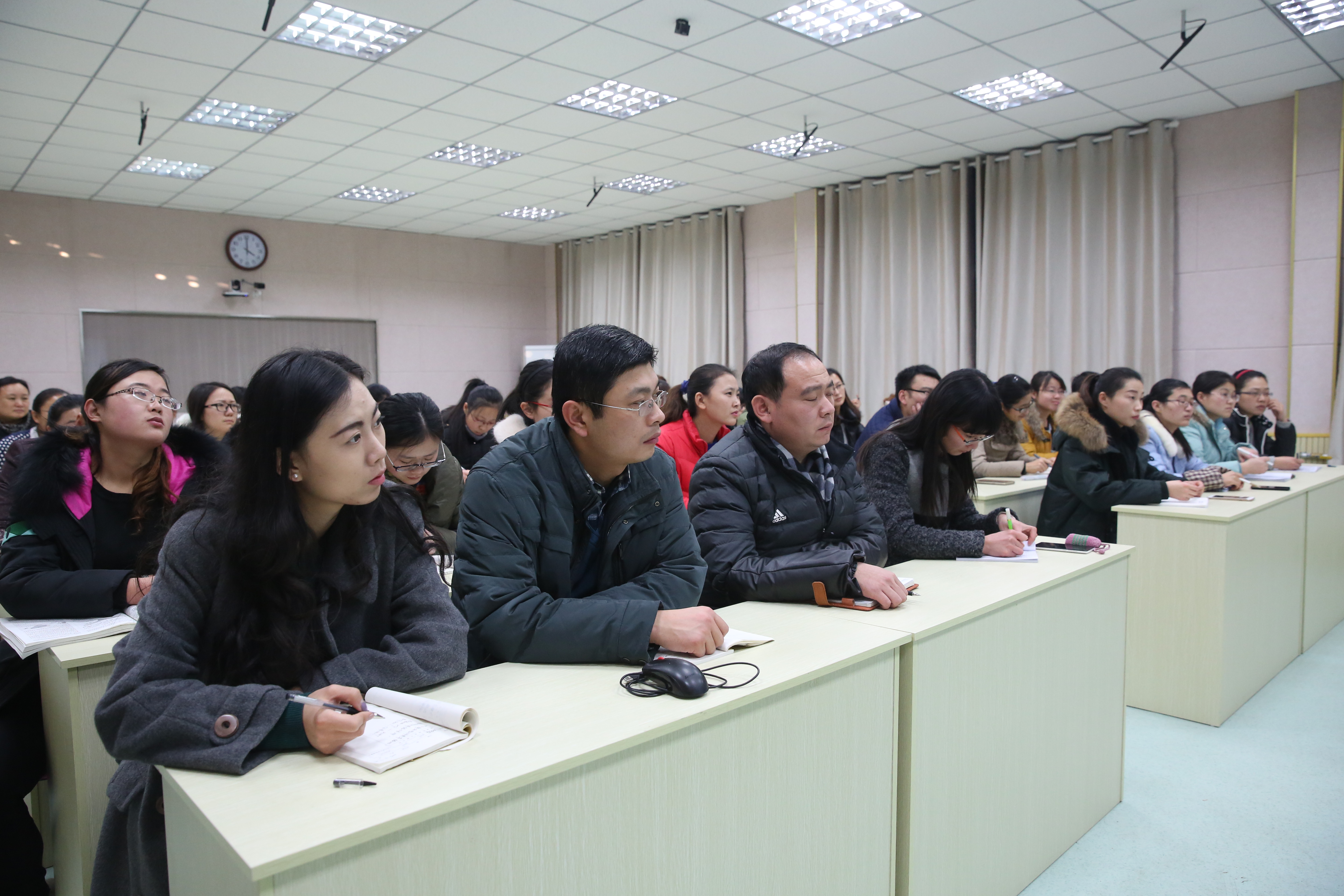 为进一步推进我校青年教师综合素养提升工程,充分调动青年教师成长的积极性,有效地帮助青年教师提高从师素质,展现青年教师的良好精神风貌,推进幸福校园建设。根据学校《关于加强青年教师培养工作的意见》(泰中党字【2013】26号)精神,学校团委于2015年12月17日下午4点在立心楼一楼录播室,举行“青年教师综合素养提升工程专家讲座”。本次讲座主题是《教师的幸福修炼》,由团委副书记赵爱荣老师作报告。全体青年教师积极响应学校关于开展第二届青年教师综合素养提升工程的号召,认真聆听并做好笔记。