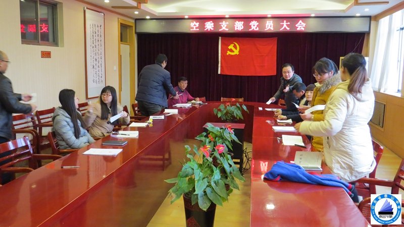 12月29日,空乘党支部在主二楼会议室召开支部党员大会,讨论接收韩磊同志为中共预备党员的申请。 校党委席书记、支部陈建华书记、宣传委员吴红海同志及支部党员、预备党员14人参加。大会由支部组织委员梁军同志主持。