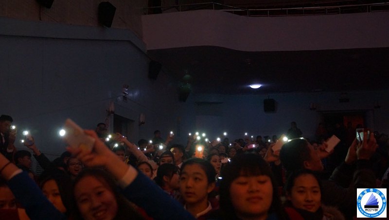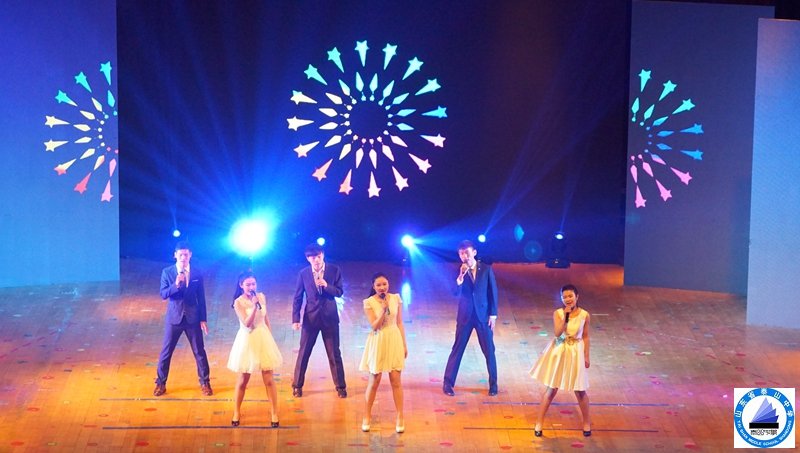 节目临近结束,空乘教师集体登台,女教师合唱歌曲《姐妹》、男教师合唱歌曲《朋友》,所有教师共唱《同一首歌》,台下的同学也深受感染,纷纷打开手机上的灯光,为老师们的精彩表现摇曳闪光,全场气氛达到最高潮!