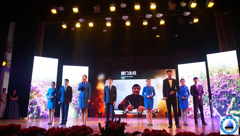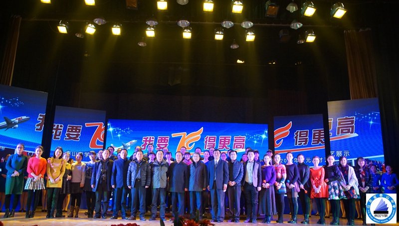 最后,陈建华主任代表空乘部全体教师致新年贺词,学校领导上台与师生共同合影留念,空乘部2016元旦“我要飞得更高”才艺展演圆满闭幕!