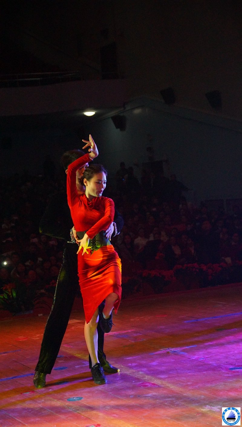 随着获得山东省排舞联赛一等奖的《火扇红灯排舞情》热烈欢庆的舞步,才艺展演正式拉开帷幕。