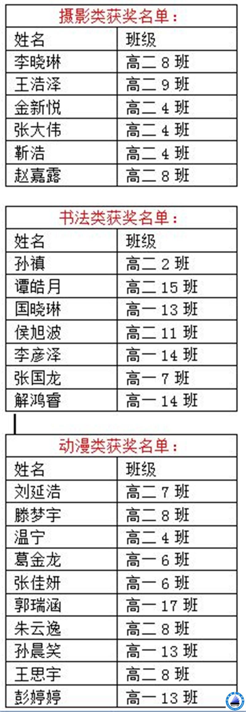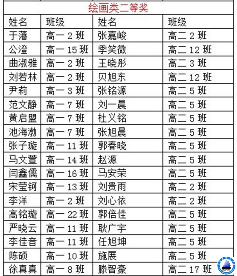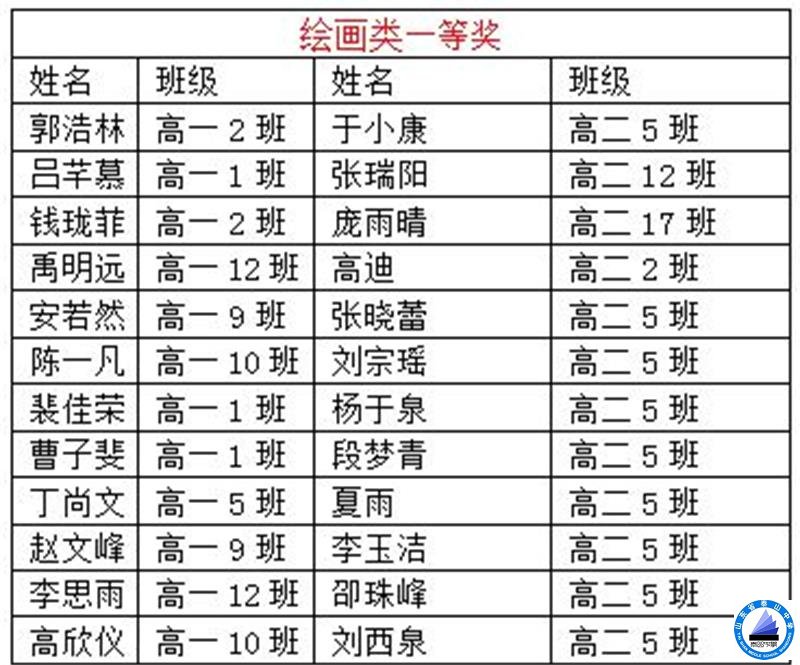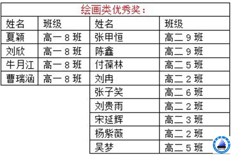山东省泰山中学第26届艺术节学生书画展获奖名单