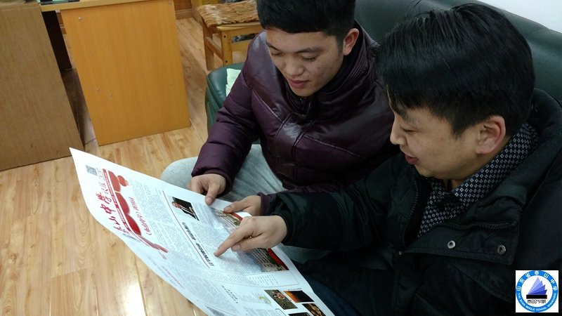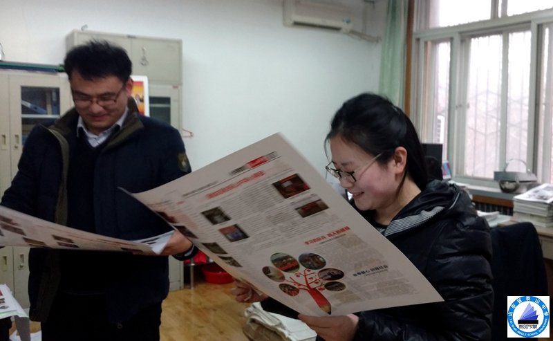 吴红海主任以最快速度腾出办公室一角分发报纸。高文、杨兴波老师率先清点够报纸数量下发给学生。纪维镇、贾世秀、孙磊老师则说:“报纸高大上,从学校教学改革到教育管理,非常全面!”孙传宝、李跃老师边读边欣喜地说:“图文并茂,既具有可读性,又具有可观性!”王雪、张俊、朱洪同老师直言:“没想到刚刚踏上讲台,就遇上这么好的校报,真为在这样的学校工作感到自豪!”