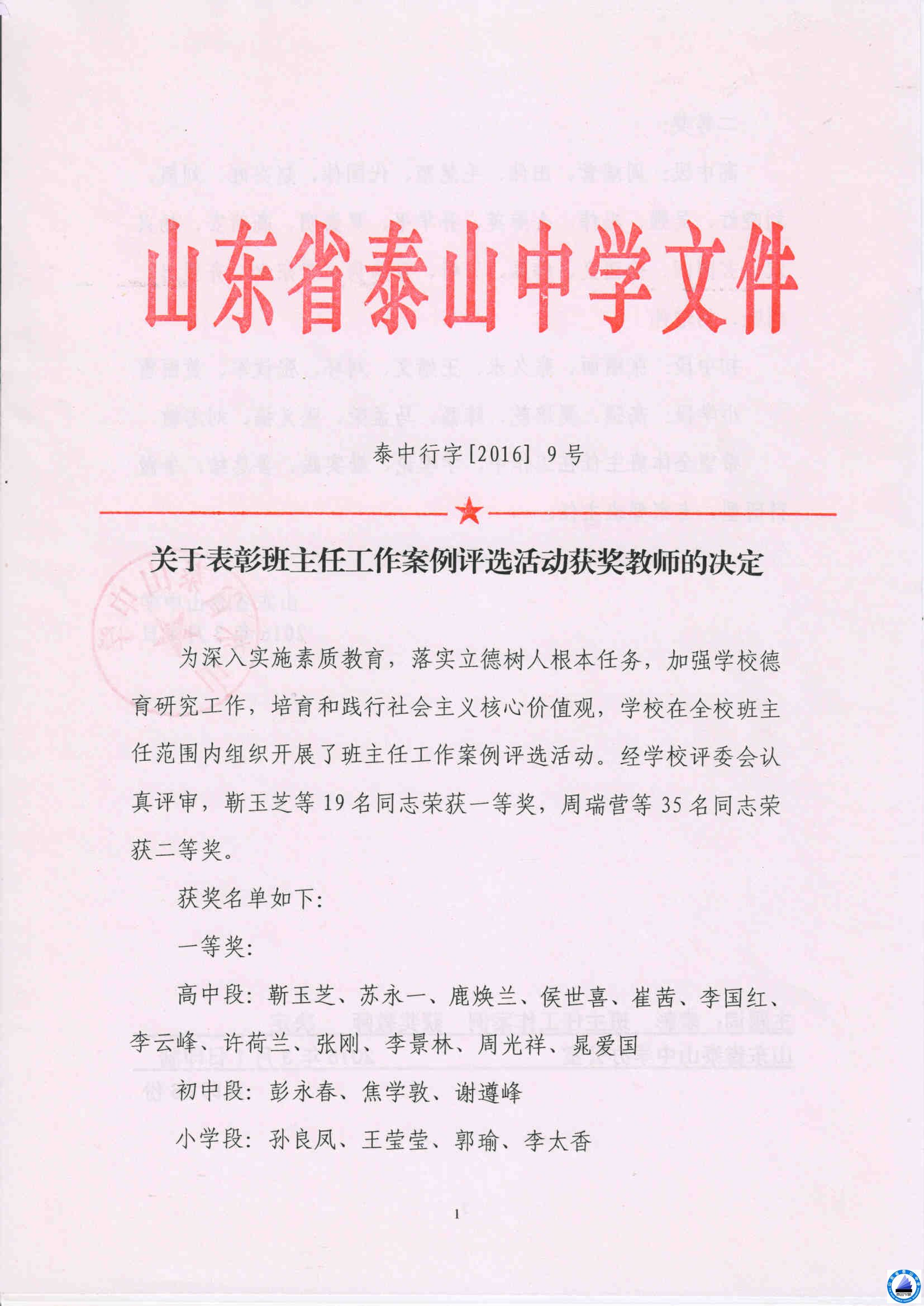 关于表彰班主任工作案例评选活动获奖教师的决定