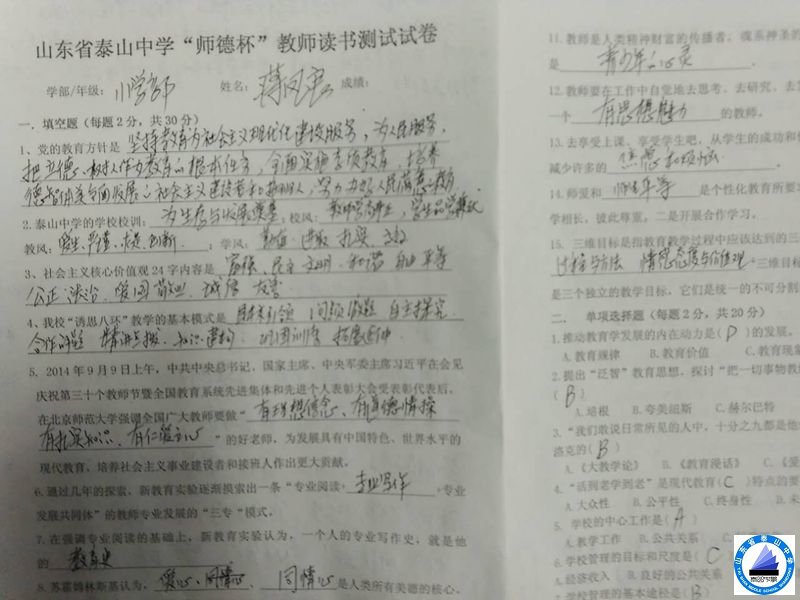 3月15日下午五点,随着最后一名教师交上试卷,我校开展的教师读书成长测试活动圆满结束了。