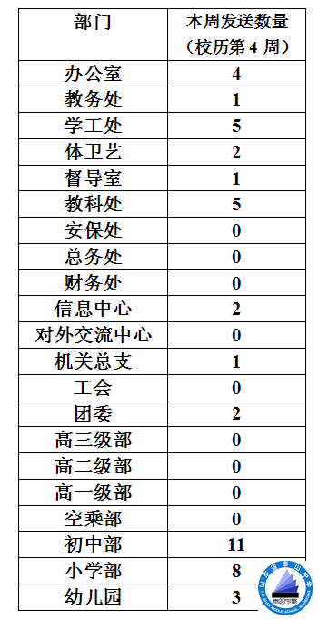 泰山中学2015—2016学年度第二学期第4周各部门校园新闻篇数统计