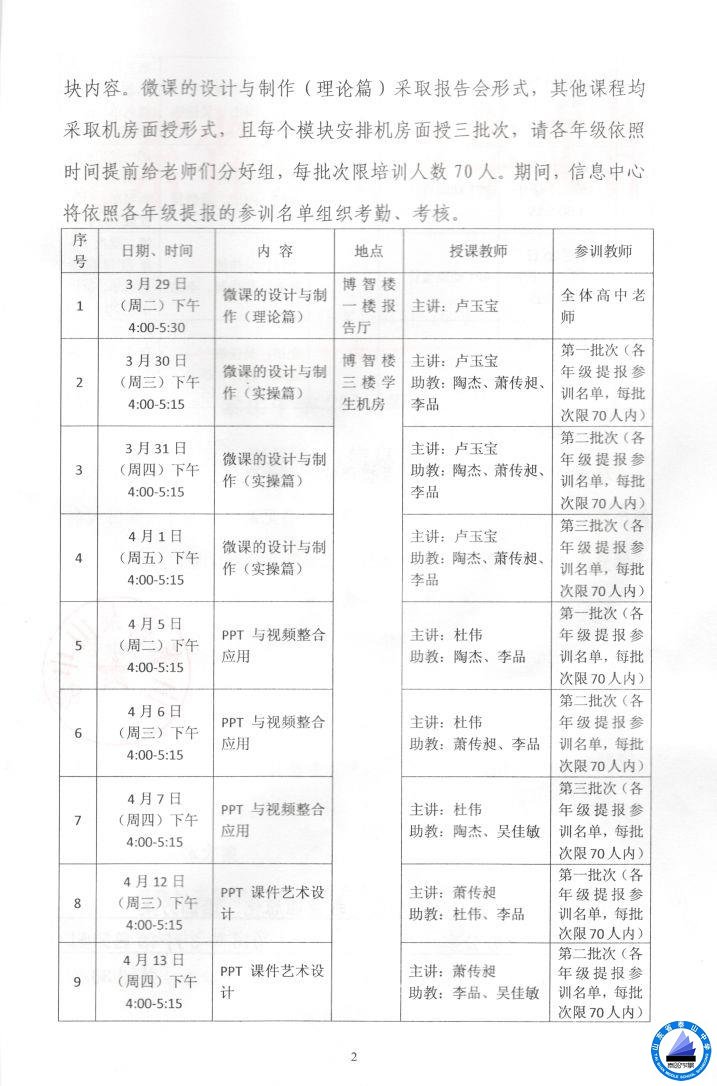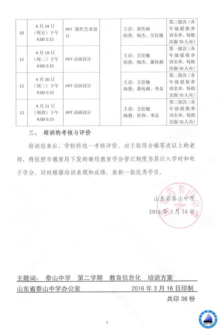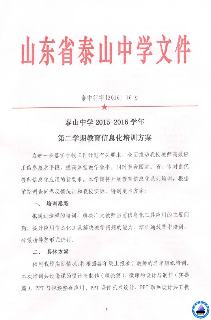 泰山中学2015-2016学年第二学期教育信息化培训方案