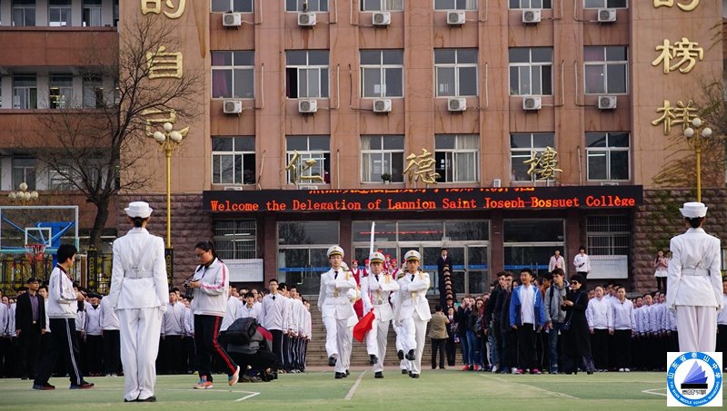 、整装待发。这是一次以“文明礼仪”为主题的升旗仪式,无处不在向法国师生展现着中华文明礼仪的博大和厚重。参观的法国学生也表现出很高的素质,雄壮的国歌声奏响,他们同中方师生一起注目五星红旗冉冉升起。升旗仪式后,空乘部全体同学向法国朋友展示了韵律健美操,饱满的热情、动感的步伐、青春的旋律惹来法国朋友纷纷拍照留念。