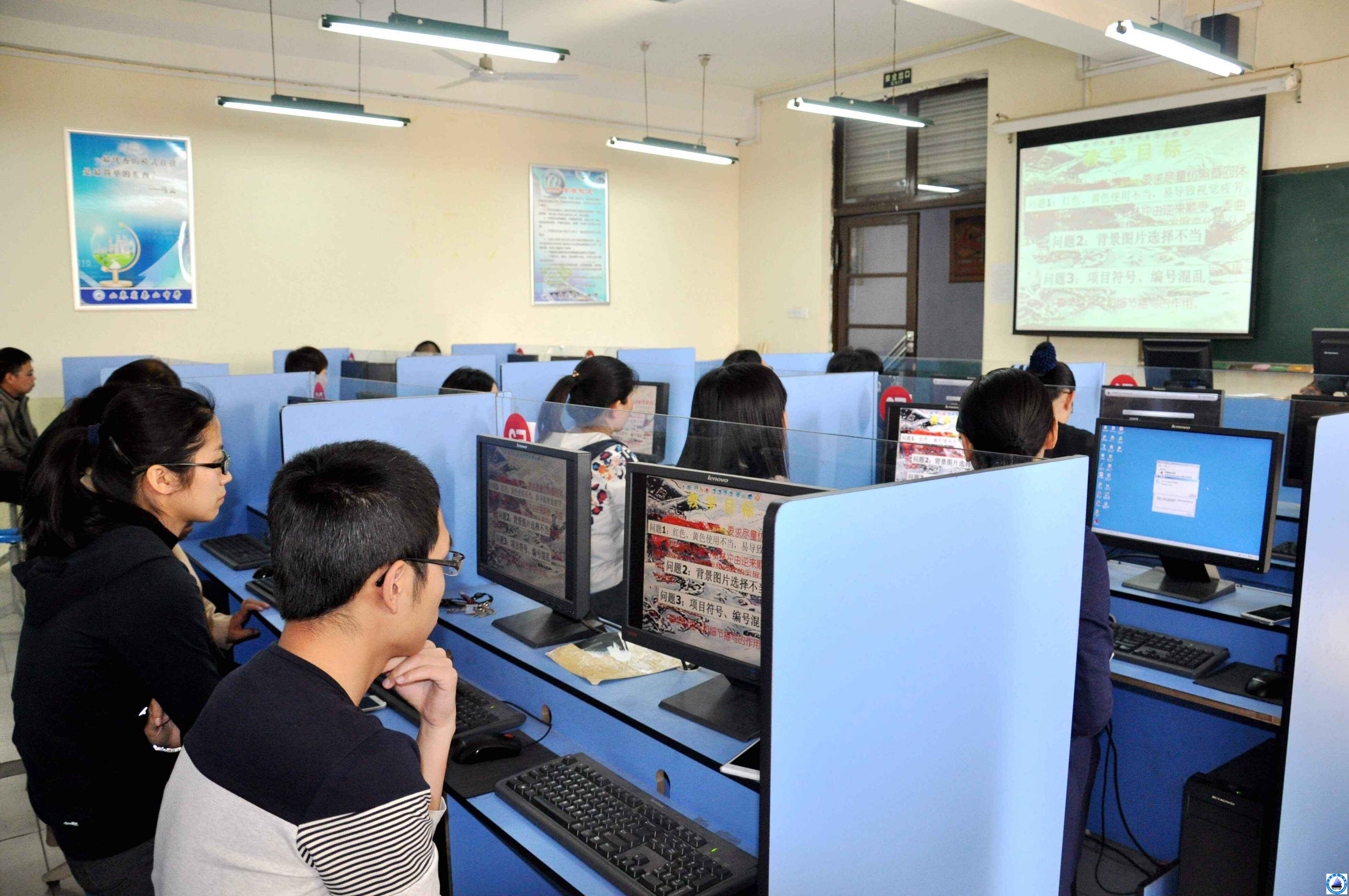 课件的制作基本原则是要求内容与美的形式的统一,美的形式能够激发学生的学习兴趣,更好地表现教学内容。2016年4月13日、14日和15日,泰山中学2015-2016学年第二学期教育信息化培训的第四模块——PPT课件艺术设计(给您的课件增添点艺术感)在博智楼1号机房如期展开。