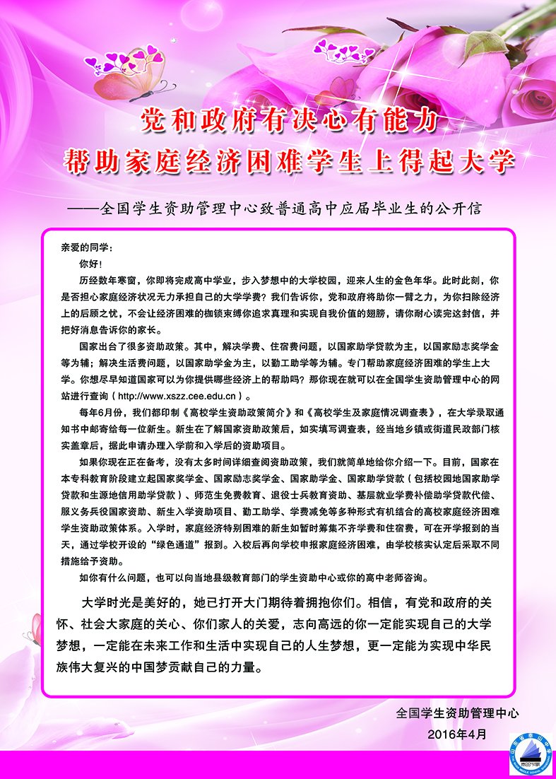 全国学生资助管理中心致普通高中应届毕业生的公开信