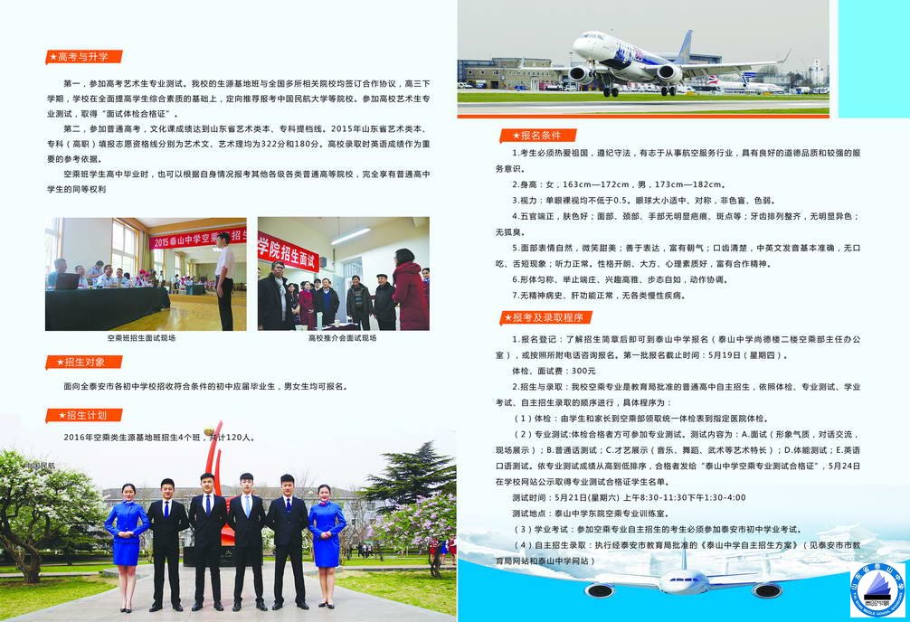 2016年泰山中学空乘班招生简章