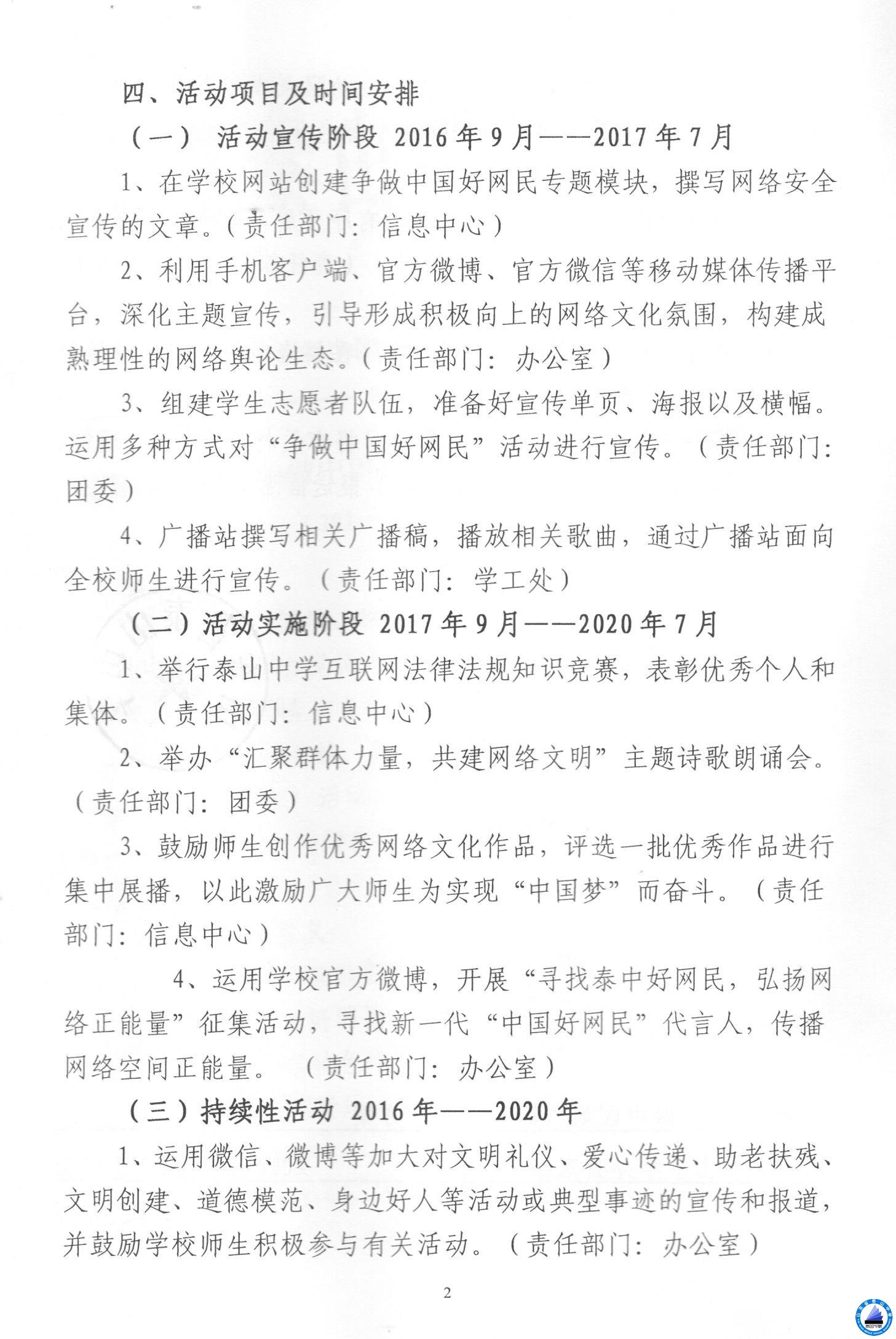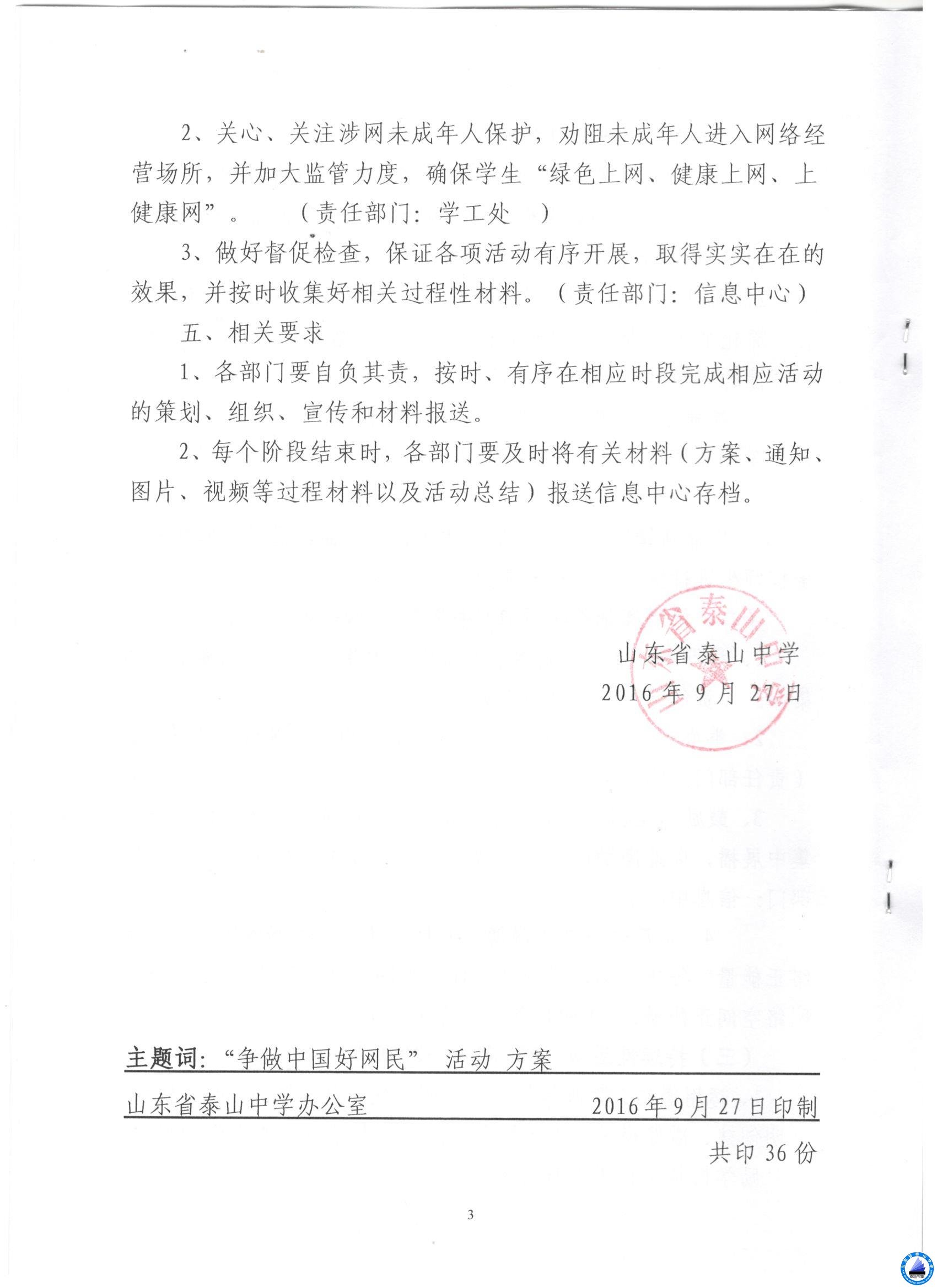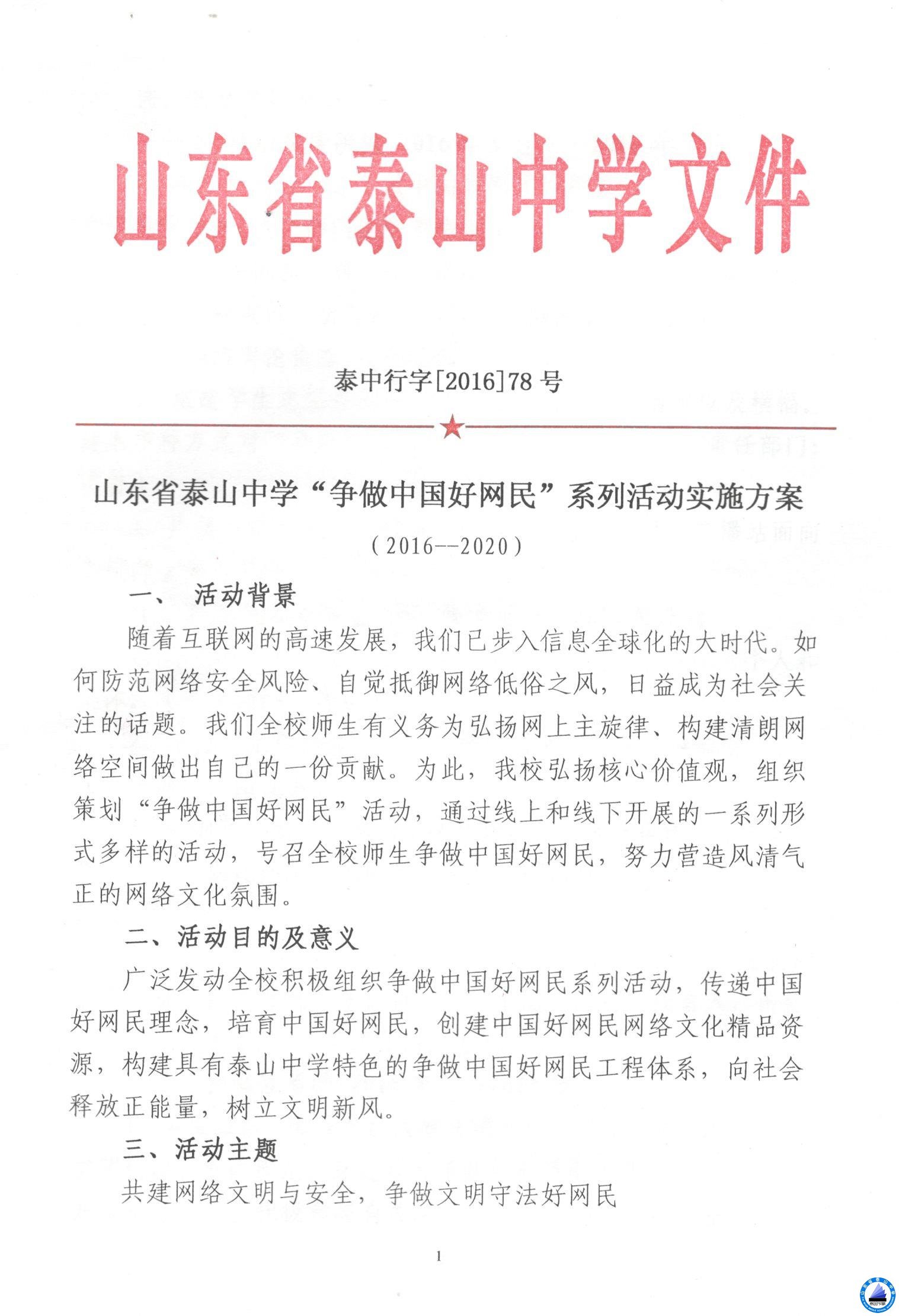 山东省泰山中学“争做中国好网民”系列活动实施方案