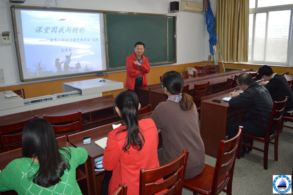 培训会上,高秀泉主任以《课堂因我而精彩》为题,对参训教师进行“诱思八环课堂教学法”培训。高主任介绍了我校课堂改革之路,从理论高度到课堂操作,详细讲解了“诱思八环课堂教学法”各环节的要求和具体实施方法。