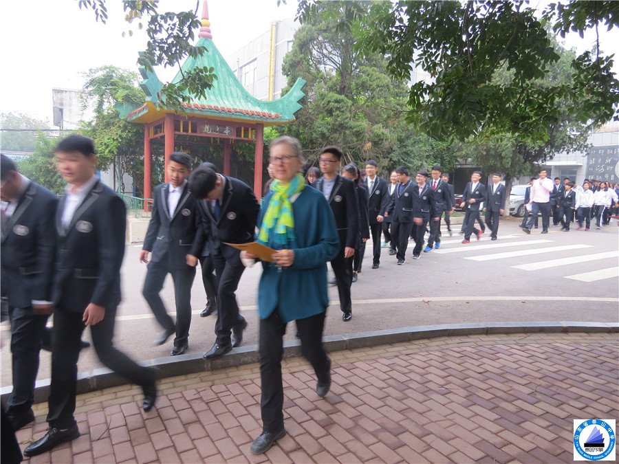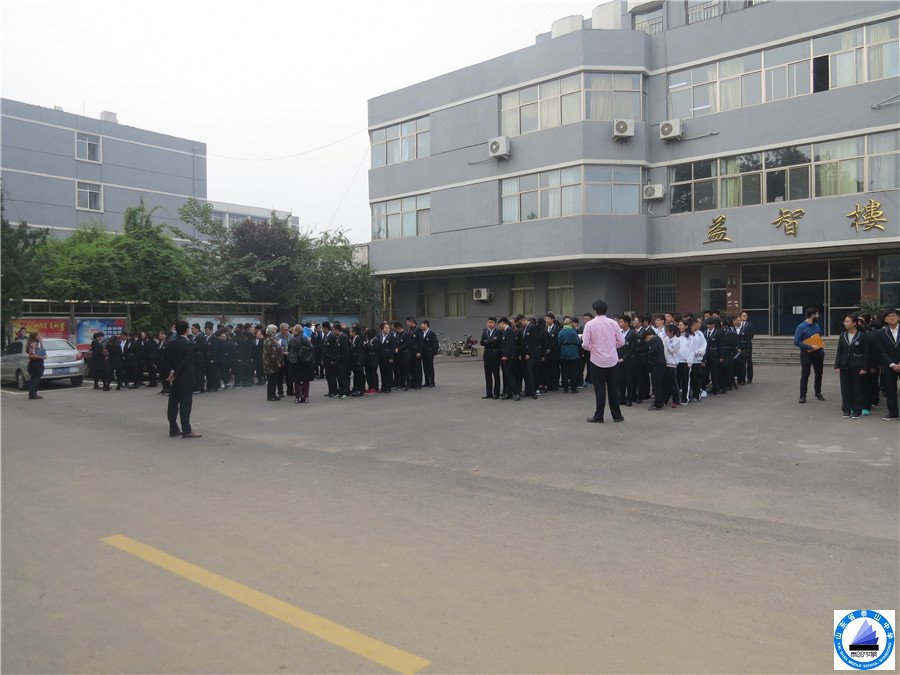 在中加班校长、国际部孔主任的带领下,中加班全体教师和学生都参加了本次演习。只听到地震消防警报哨声,外教发出警告‘地震消防演习’。学生们都安静地听候外教进一步的指令。接着 外教命令学生‘全体起立’。学生们起立并保持安静。外教拿起学生名单(贴在教室墙上的)或者学生出勤名单,打开教室门,选择决定要疏散学生的通道,然后发出‘行进’的命令。外教监督学生按秩序离开教学楼到达提前指定的安全地区,立刻拿出手里的学生名单核对学生数目。