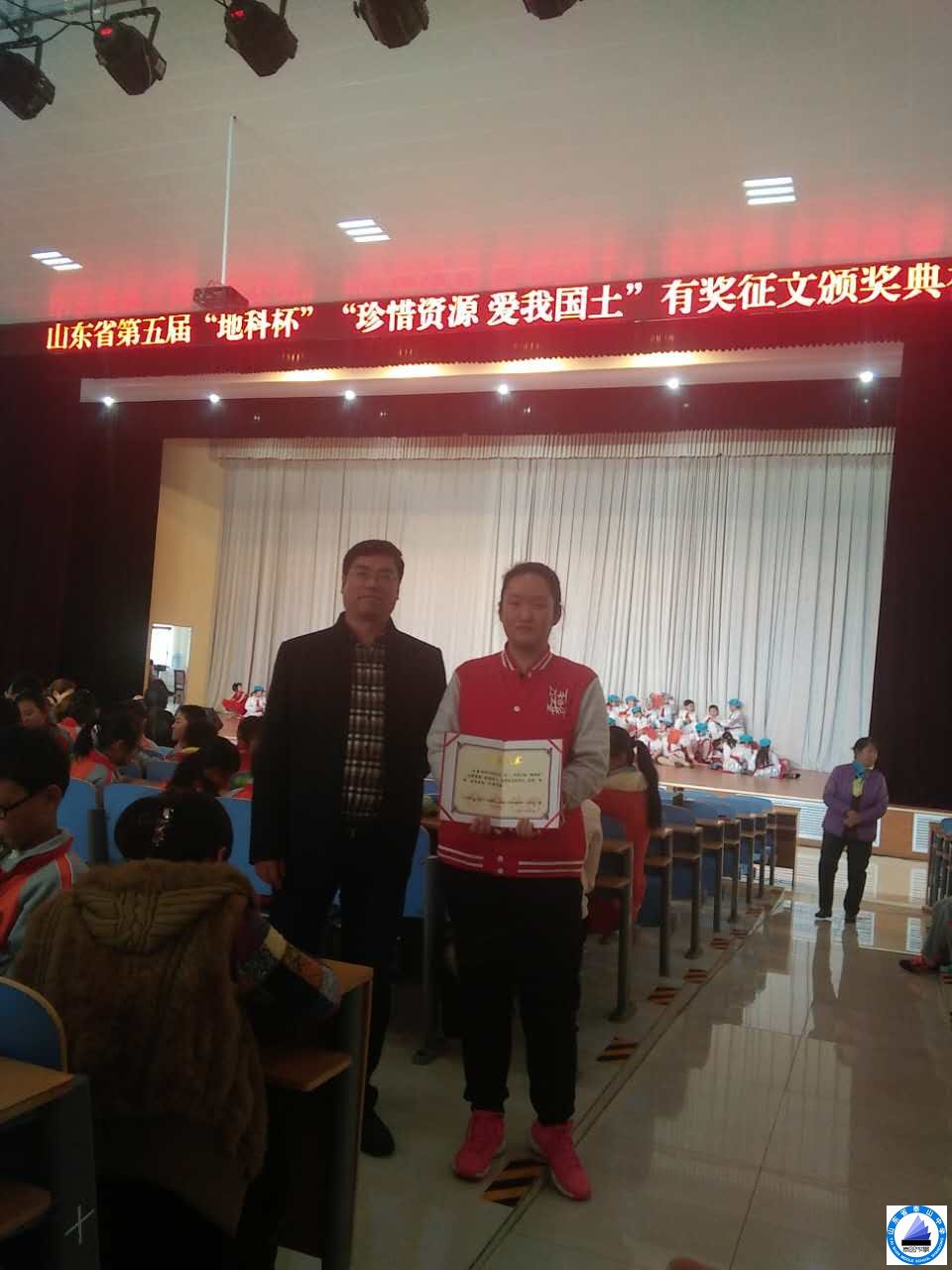 2016年10月29日,山东省第五届“地科杯”征文比赛颁奖典礼在肥城市实验小学隆重举行。省、市国土资源厅、省教育厅、团省委等主要领导和与会并颁奖。我校高三年级的王嘉阳同学荣获一等奖,孙太军老师获优秀指导教师奖。