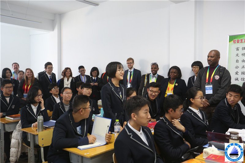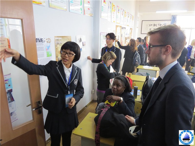 美国中小学校长首先在中加班志愿者的陪伴下依次参观了我校高中部、初中部、幼儿园、小学部及中加班,观摩了我校空乘排舞、武术课堂、幼儿篮球操等特色办学,深入课堂与我校师生热情交流。在中加班,校长团在加方校长的带领参观了教室、计算机实验室,走进加方教师课堂,与加方教师和学生们亲切的交流。美国校长们对中加班的教育模式大加赞赏。在参观过程中,中加班志愿者们用流利的英语向美国校长们详细的介绍了我校各部的教学理念、办学特色等情况,并认真耐心的与校长们交流,回答他们的疑问。校长团对中加班志愿者突出的英语水平和良好的精神面貌赞不绝口。