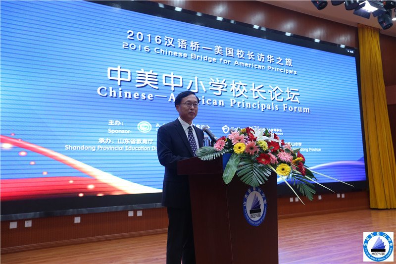 11月16日上午,2016汉语桥--中美中小学校长论坛在我校举行。来自美国的38位教育官员和校长,与山东省70多位教育官员和校长相聚一堂,共同探讨教育领域的交流与合作。