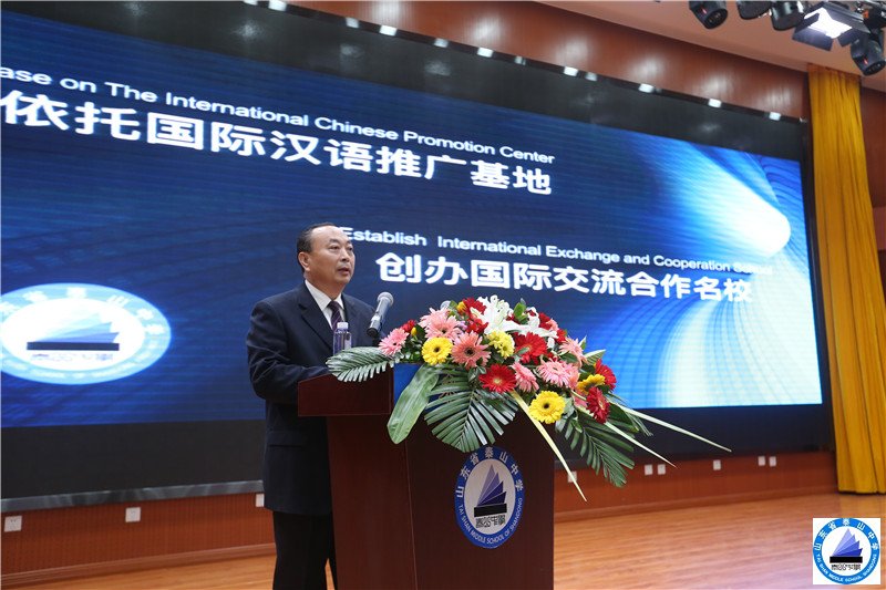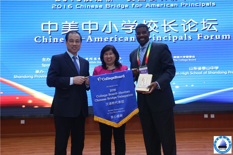 山东省教育厅总督学孟庆旭、泰安市副市长成丽、美国大学理事会Shameek Chioke Robinson 先生和黄丽娟女士、泰山中学校长周军等领导出席论坛并发表讲话。孟庆旭厅长首先欢迎美国校长团到访山东,并向客人介绍了山东省教育发展情况、山东省开展教育对外交流与合作情况,希望双方校长通过此次交流,加深了解,建立联系,为将来进一步开展合作打下基础。成市长表示去年汉语桥的活动给双方中小学生和老师们留下了美好的印象,并对今年来泰访问团表示最诚挚的欢迎。成市长介绍了泰安中小学教育教学发展概况,表示泰安不断加快对外开放步伐,本次交流访问活动,为日后更好的交流合作打下了基础,将为泰安的教育教学管理发挥积极作用。