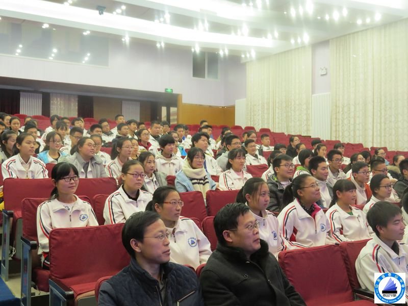 在教科处康明申主任的一段精彩开场白之后,讲座由我校化学组的刘玲玲老师主讲,讲座紧扣主题,案例生动,全面细致。台下全体学生坐姿端正,认真倾听,会场不时传来一阵又一阵热烈的掌声。