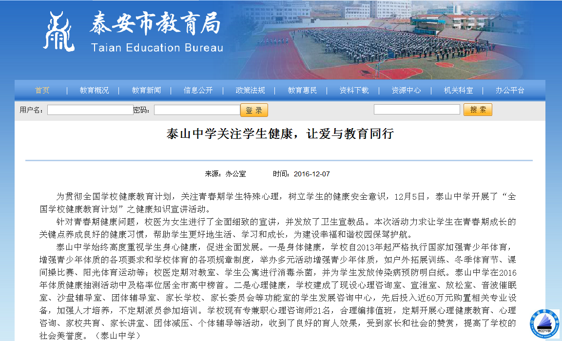 泰山中学关注学生健康,让爱与教育同行