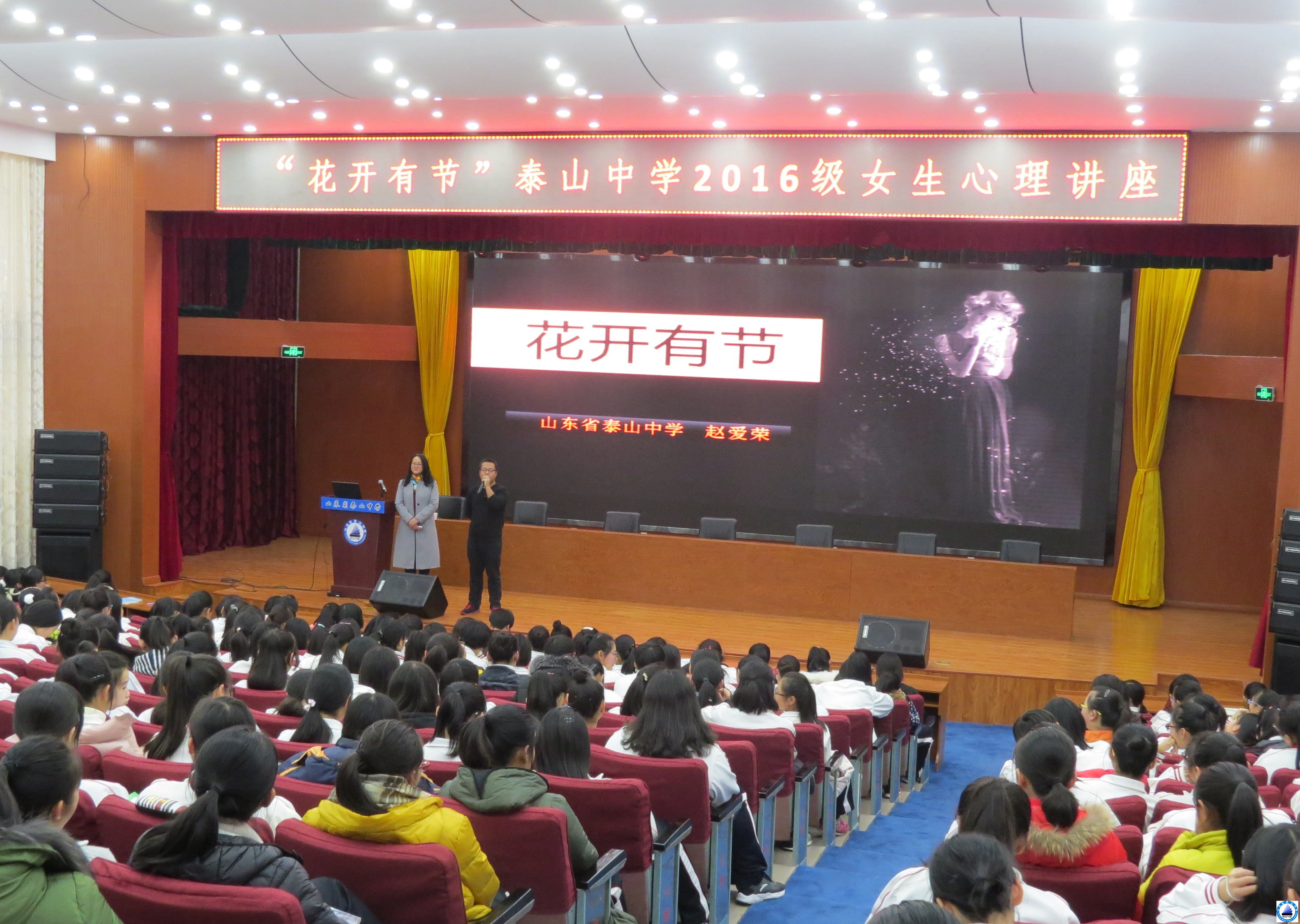 青春期教育是学校精神文明建设的一项重要内容,也是学校素质教育的重要组成部分。为了进一步强化女生的自我意识,增强女生的社会角色意识及适应能力,近日,由国家二级心理咨询师、学工处副主任赵爱荣为高一年级全体女生做了主题为“花开有节”的心理健康教育讲座。讲座由高一年级德育主任王涛主持。
