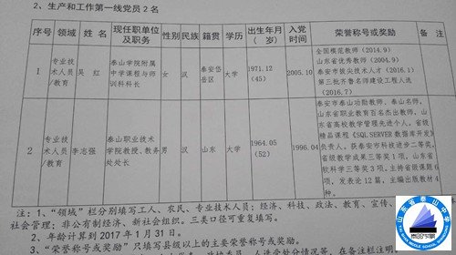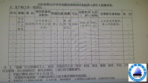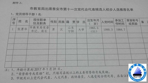 市教育局党委根据各市直学校上报的党代表候选人情况,召开了党委会研究并确定了党代表候选人人选:党员领导干部党代表为教育局党委书记张勇华同志,生产和工作第一线的党员代表为泰山学院附属中学吴红老师和泰山职业技术学院李志强教授,学校党委接到局党委推荐的党代表候选人后,同意教育局党委的推荐人选,并进行了回复。