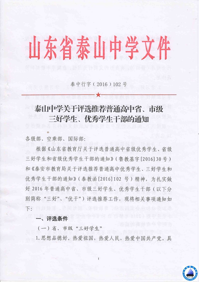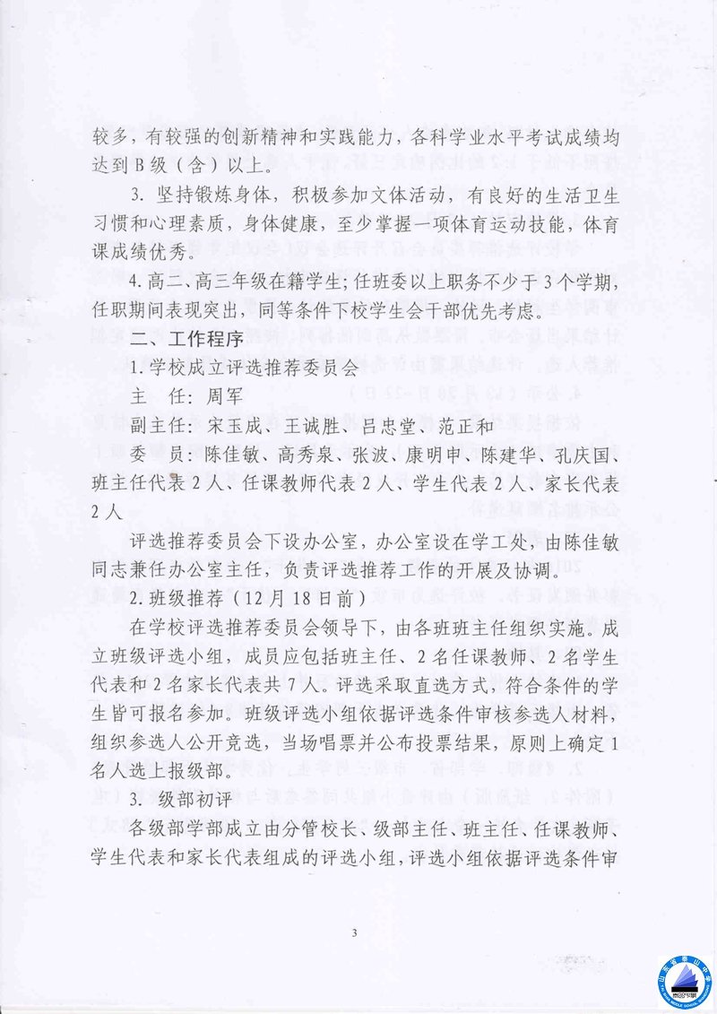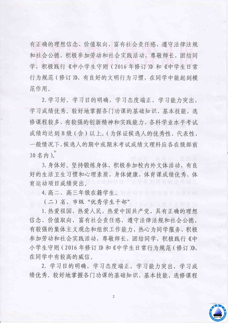 关于评选推荐普通高中省、市三好学生、优秀学生干部的通知