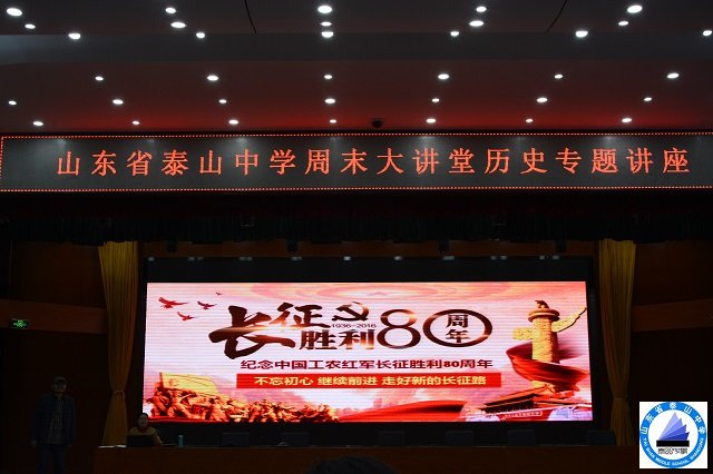 泰山中学历来重视丰富学生的精神世界,此次讲座,不仅是唤起同学们的爱国热情,也教育同学们要学以致用,指引自我奋斗的历程。的确,人生就像一次长征,求学之路也像一次长征,对于高三的学子们来说,更要发扬先辈们百折不挠的精神,积极进取,永不言弃。“苦不苦,想想长征二万五;累不累,想想革命老前辈”!