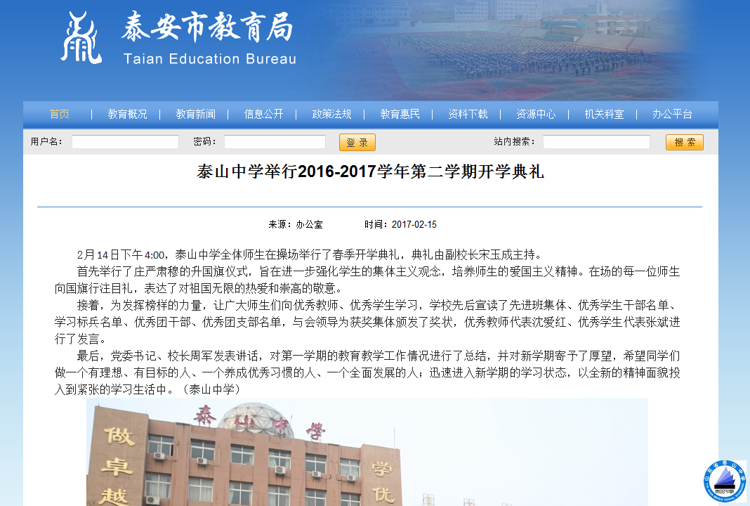 泰安市教育局报道我校举行新学期开学典礼新闻