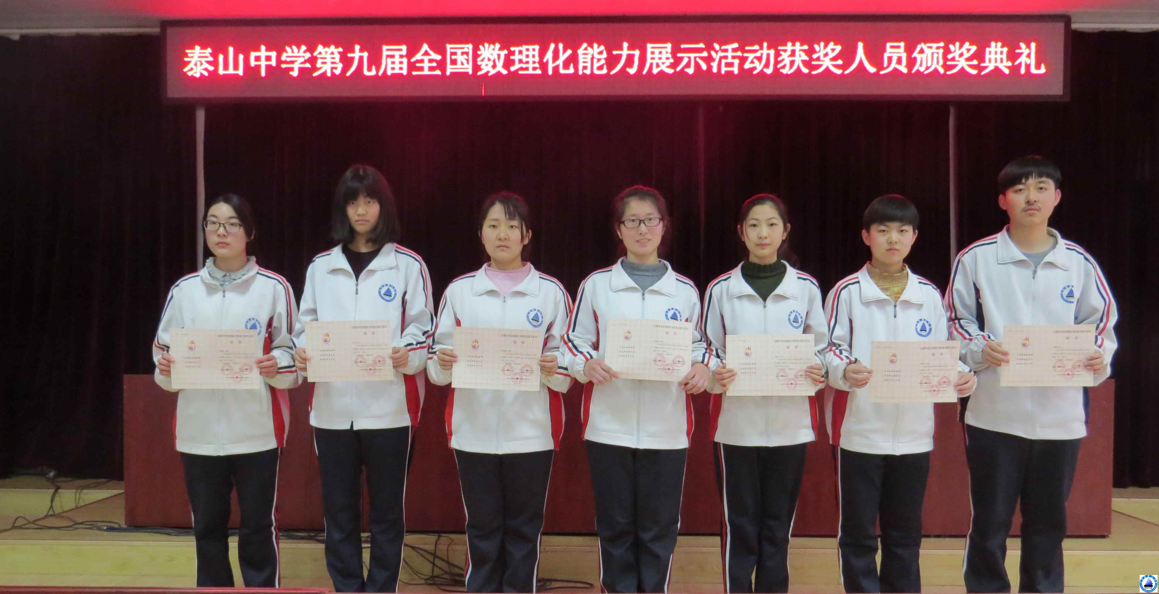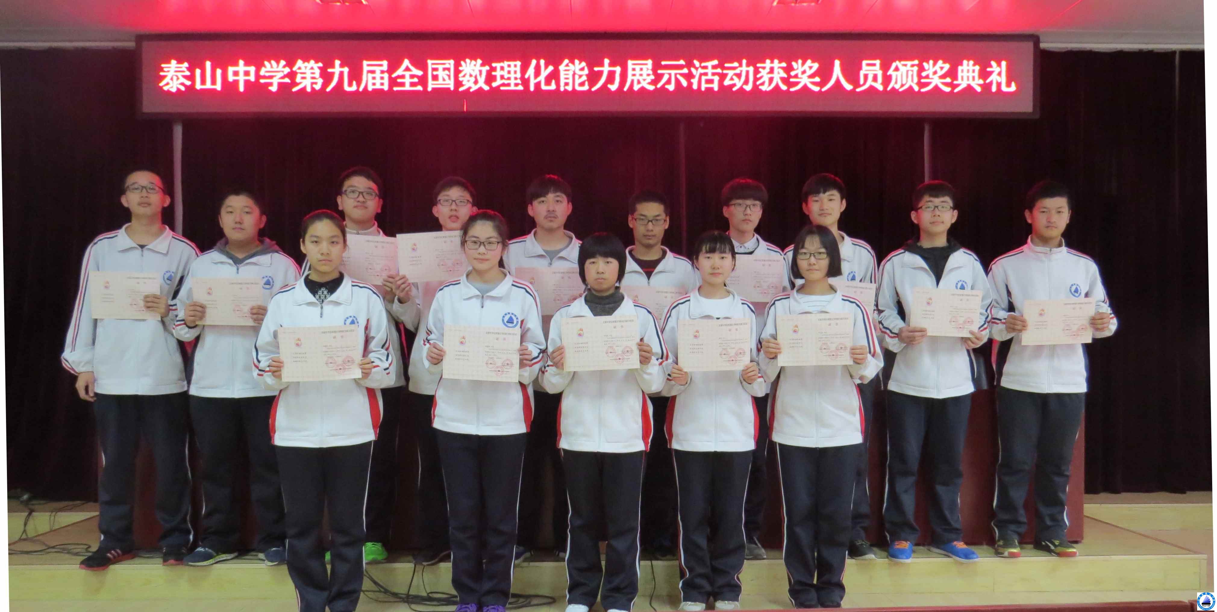 在刚结束的第九届全国数理化能力展示活动大赛中,我校学生取得了可喜的成绩,学校举行了颁奖典礼,对获奖人员进行了表彰,其中获全省一等奖的同学有20人,其中高一9人,高二11人;获全省二等奖的有38人,其中高一12人,高二26人。