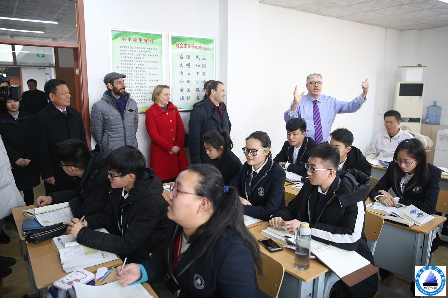 访问团一行在山东省泰山中学宋玉成的带领下参观了我校幼儿园、小学部和中加班,了解了中国基础阶段的教育情况,对我校多层次的办学情况大加赞赏。