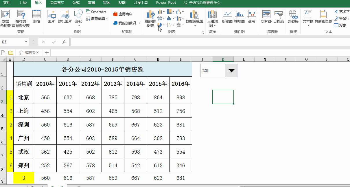 用VLOOKUP函数为城市代表的编码赋值,从而实现单元格编码改变,对应的数值也发生改变。