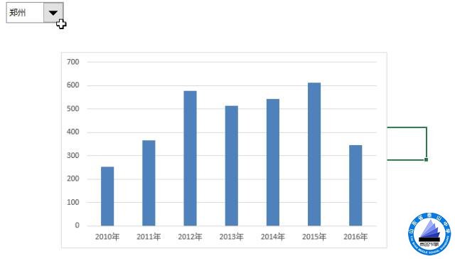 插入柱状图,选择C2:I2,按住Ctrl键,再点击C9:I9,完成数据源选择,单击确定,动态图表制作完成。