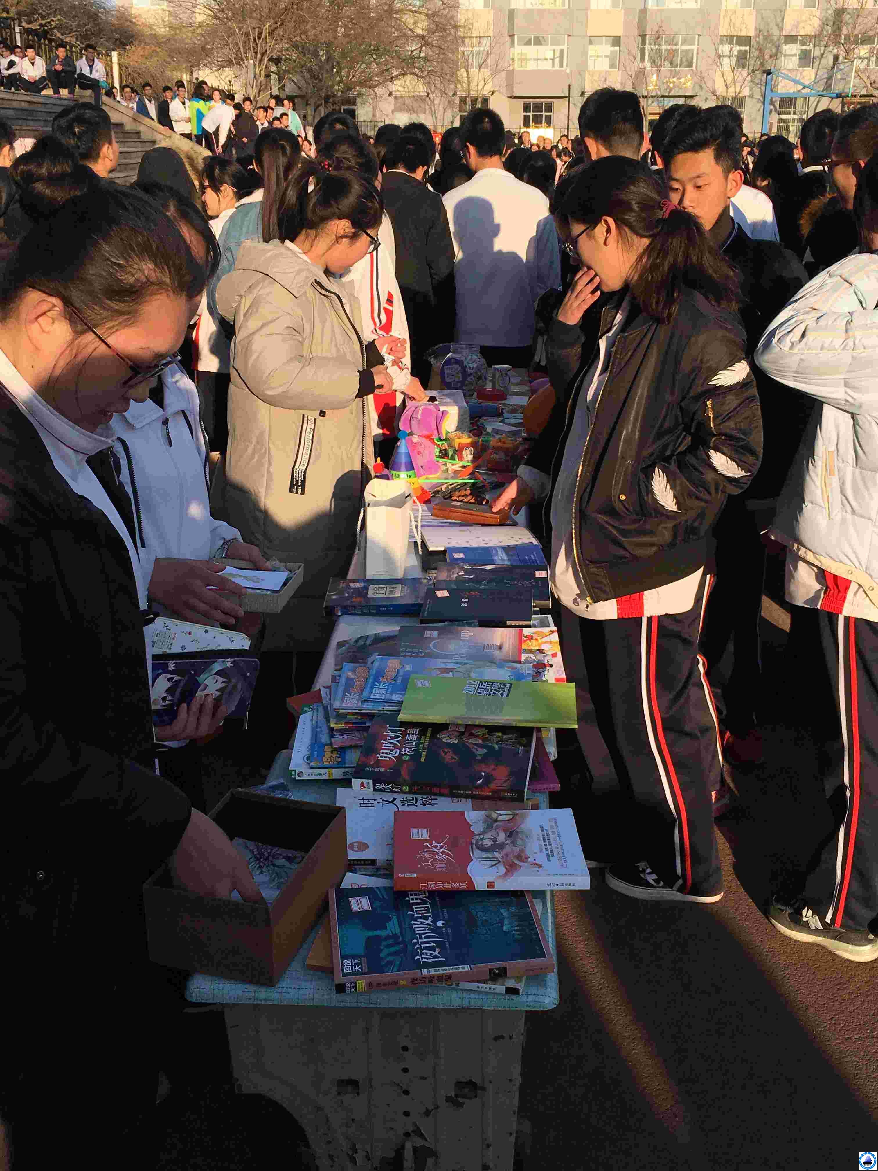 爱心义卖摊位围满捐献爱心的同学们
