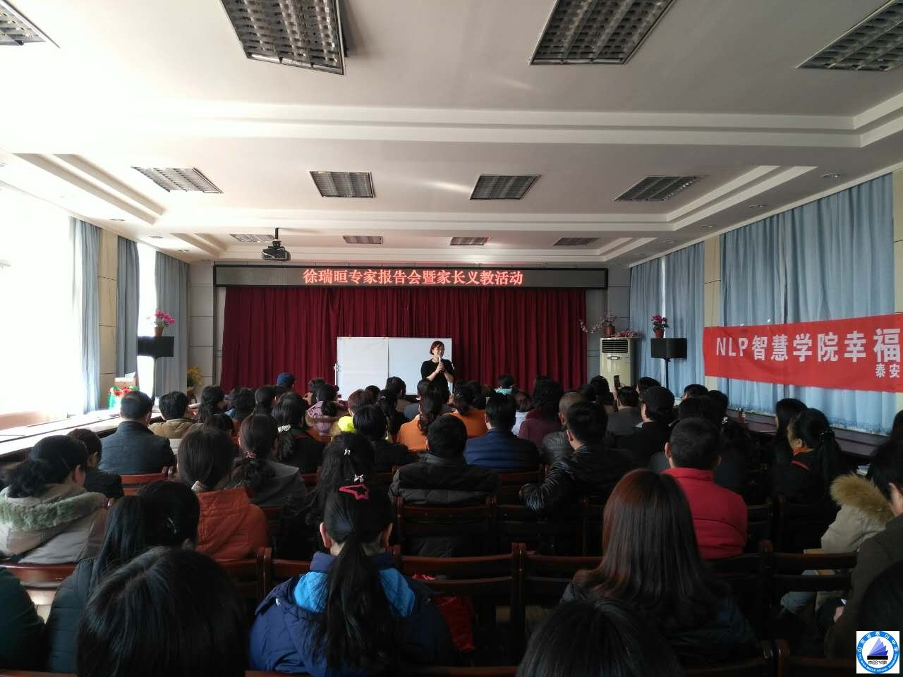 为建立家校之间和谐的合作关系,共谱“家校共育”的新篇,山东省泰山中学2015级家长委员会委员侯国旭的妈妈邀请泰安市应用心理学会NLP智慧学院导师、国际专业执行师徐瑞暄到校作报告。时间是3月9日下午2:00到5:00,地点在泰中东院立心楼三楼心理咨询会议室。参会的有高二年级、学工处和教务处等部门领导,有高二年级的部分教师和高二级部的九十多位家长,甚至有几位是学生的爸爸和妈妈都到会,整个会议室座无虚席,报告会由年级德育主任张刚主持。