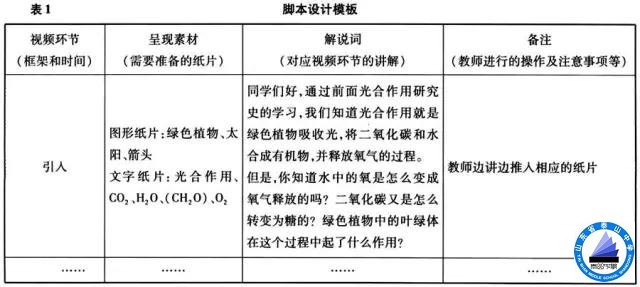 根据视频的整体规划,教师需要设计具体的脚本内容,包括每个环节内容对应的纸片素材,教师的解说以及其他相关操作等,脚本设计模板如表1所示。