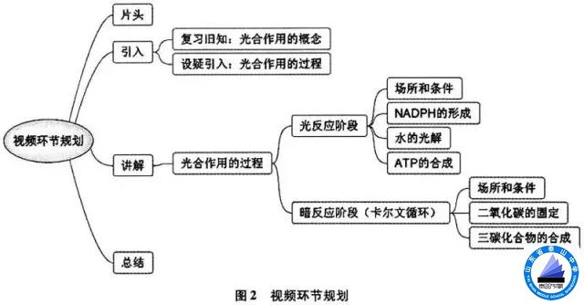 “光合作用的过程”是高中生物学教学中的核心内容,要求学生通过该内容的学习,能够说出光合作用的物质变化与能量转换过程,并认识光合作用的过程和实质(图2)。教师需根据教学设计思路规划视频中的各个环节及知识内容。
